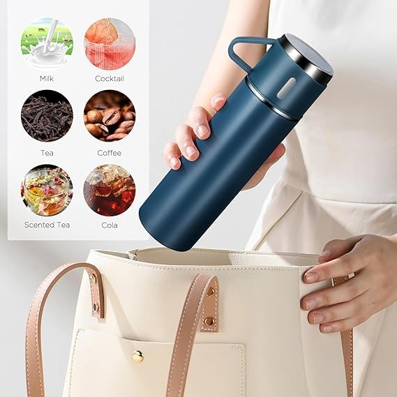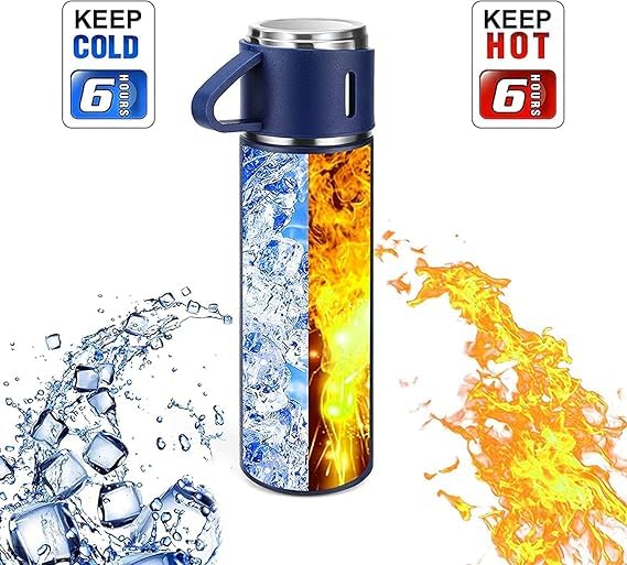 Generic - طقم ترمس حراري ستانلس ستيل من مع 3 أكواب الستانلس - 500 ملليلتر - يحافظ على السخونة/ البرودة | هدية مثالية للشتاء - الانتقال لمنزل