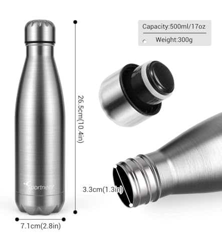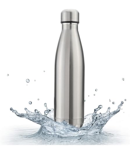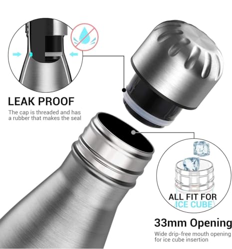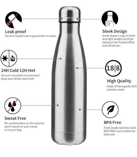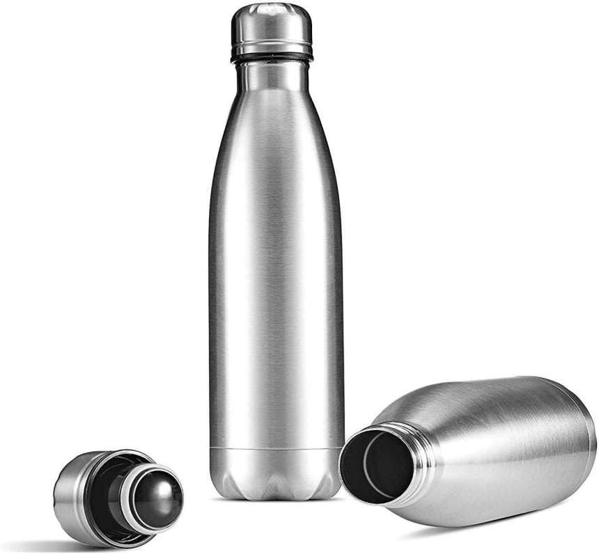 Generic - زجاجة مياه معزولة بتفريغ الهواء من الستانلس ستيل بجدار مزدوج للمكتب وصالة الالعاب الرياضية محمولة مضادة للتسرب سعة 500 مل فضي مقاومة للانزلاق