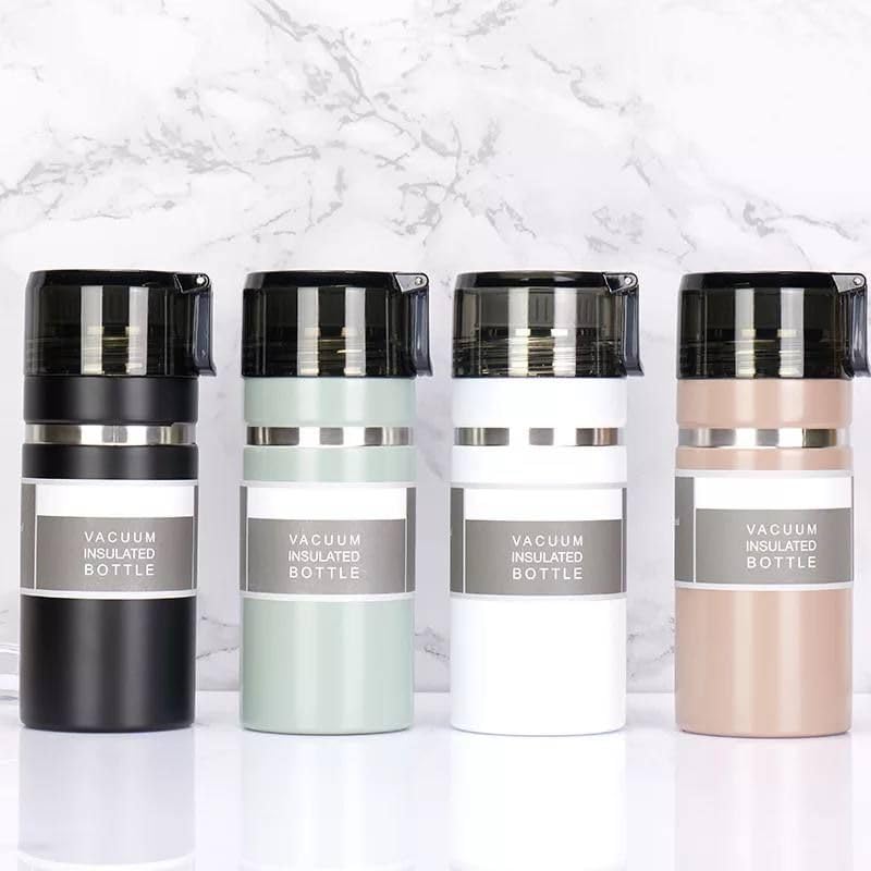 - السعة: زجاجة فاخرة معزولة بتقنية التفريغ الهوائي بسعة 470 مل مثالية للحفاظ على المشروبات في درجات الحرارة المرغوبة طوال اليوم.