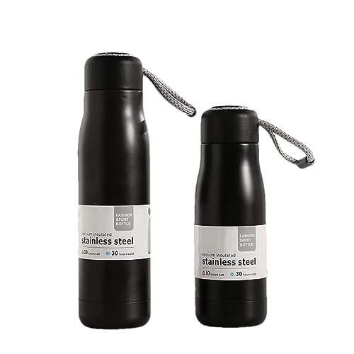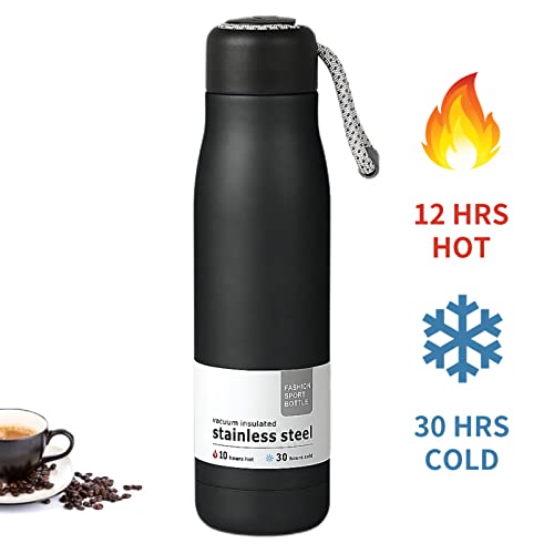 Jumigra - زجاجة مياه معزولة بتفريغ الهواء مصنوعة من ستانلس ستيل، ترمس حراري معزول، مج قهوة حراري للسفر، كوب معدني مزدوج الجدار يحافظ على السخونة والبرودة، بغطاء مقاوم للتسريب مزود بحلقة للحمل، اسود، 18 اونصة