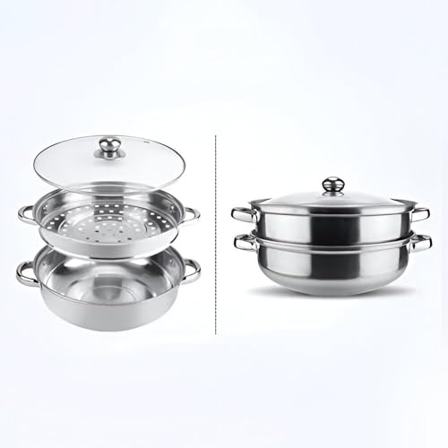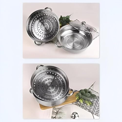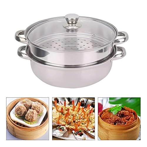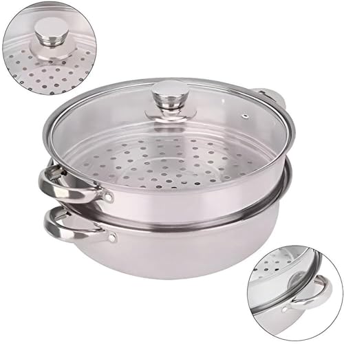 Generic - مكواة البخار للخضروات من فولاذ مقاوم للصدأ - حلة طهي بالبخار بغطاء زجاجي من طبقتين مع مقابض مريحة للطهي الصحي للخضروات والأسماك والأرز
