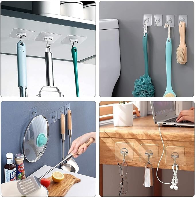 - تتناسب خطافات الحائط هذه مع معظم الأسطح المسطحة والمستقرة، كما أنها مثالية لتعليق الدش وملحقات الحمام وأدوات المطبخ والمعاطف. تتميز الخطافات بتصميم شفاف فريد، ما يجعلها غير مرئية تقريبًا ومناسبة تمامًا للديكور المنزلي الجميل.
