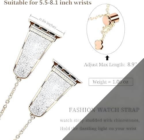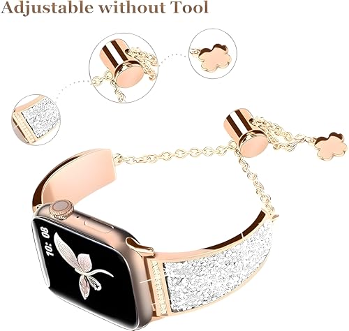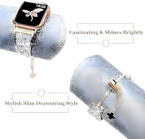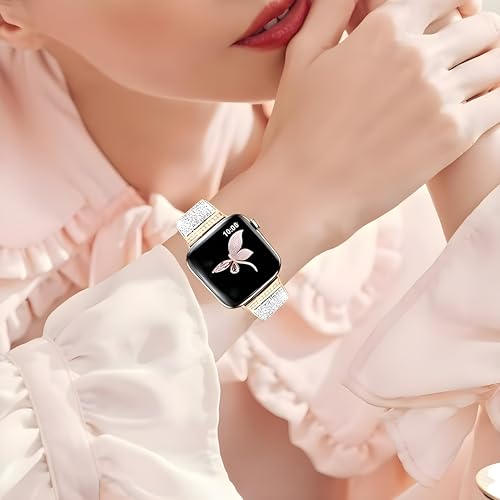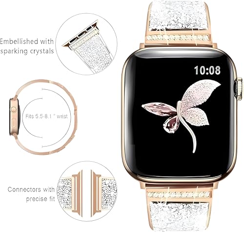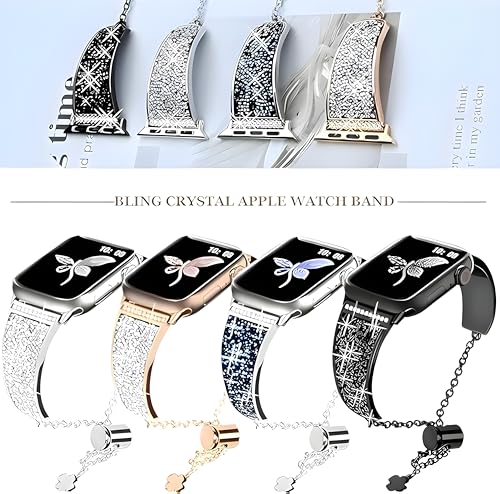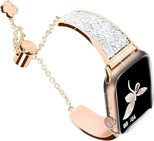 Next store - سوار ساعة من المعدن المقاوم للصدأ متوافق مع Apple Watch (42/44/45/49 ملم) – تصميم لامع مرصع بحجر الراين للنساء – من Next Store