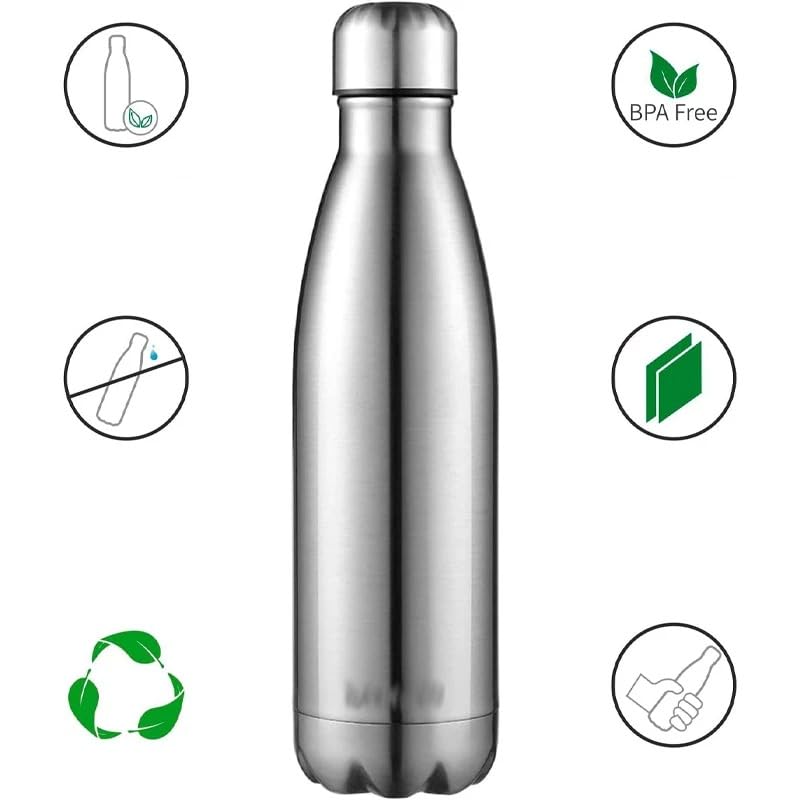 Generic - زجاجة ماء استانلس ستيل عالية الجودة للحرارة والبرودة - سعة 500 مليل - تبقى الماء باردًا أو ساخنًا لساعات طويلة - مناسبة للرحلات والنواد - من جينيريك