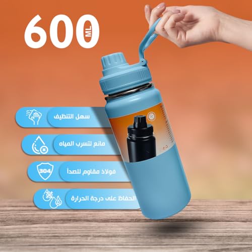 Generic - زجاجة مياه مصنوعة من الفولاذ المقاوم للصدأ بسعة 600 مل، مضادة للتسرب مزدوجة طبقات العزل مصممة بفوهة عريضة وغطاء للشفاطة، زجاجة ماء رياضية للأنشطة الداخلية والخارجية، موديل WU-278 (لون أزرق فاتح)