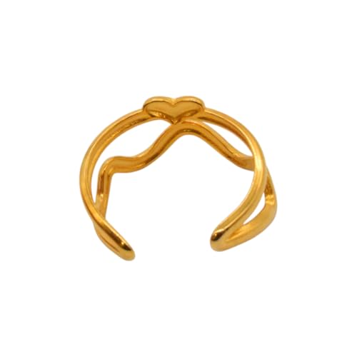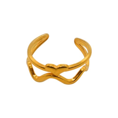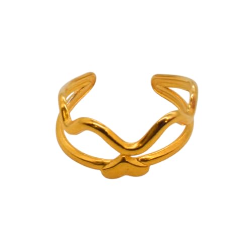 Generic - خاتم للنساء بتصميم مموج من الستانلس ستيل، مقاس واحد - ذهبي FA320