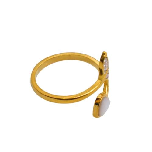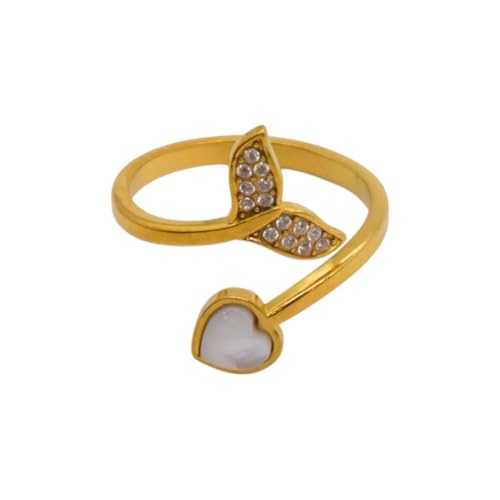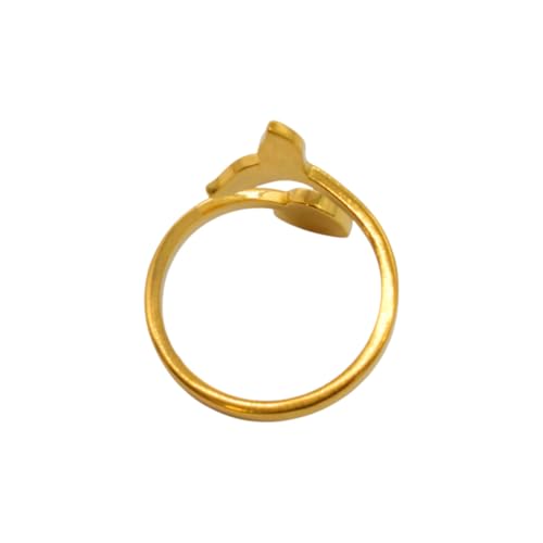 Generic - خاتم نسائي من الستانلس ستيل بتصميم ذيل الحوت والقلب، مقاس واحد - ذهبي