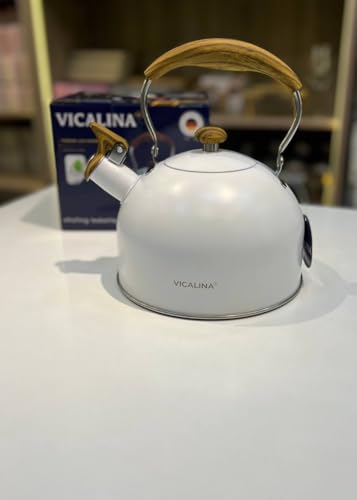 Generic - غلاية صفير من الستانلس ستيل، 3 لتر، مقبض خشبي، ابيض