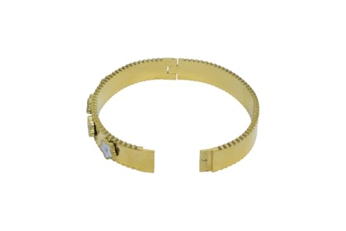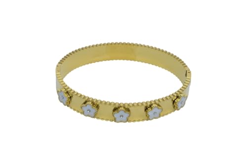 Generic - سوار عريض من الستانلس ستيل مع لمسات زهور بيضاء للنساء - ذهبي