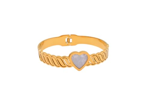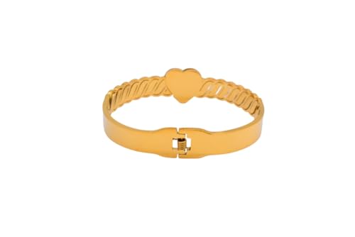 Generic - سوار عريض من الستانلس ستيل بتصميم قلب للبنات - ذهبي