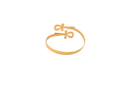 Generic - سوار عريض من الستانلس ستيل بتصميم مفتاح الحياة للبنات - ذهبي
