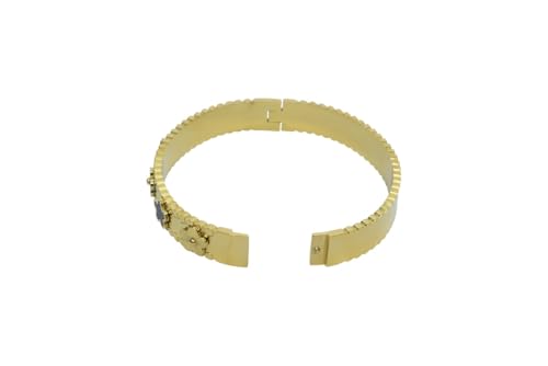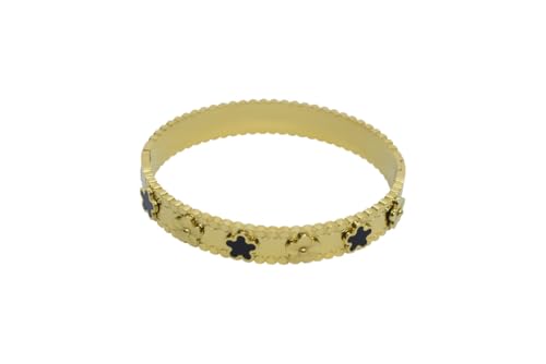 Generic - سوار عريض بمفصلات من الستانلس ستيل مع لمسات زهور زرقاء وذهبية للنساء - ذهبي