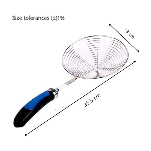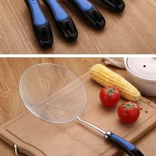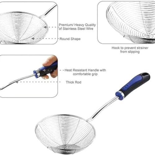 - مصفاة من الستانلس ستيل: مصفاة المطبخ هذه مصنوعة من الستانلس ستيل عالي الجودة، أسلاك شبكية وإطار خارجي قوي ومقبض، لن تتفاعل مع الأطعمة، آمنة ومتينة. رائعة لإزالة الأطعمة من المقلاة العميقة أو السوائل الساخنة الأخرى.