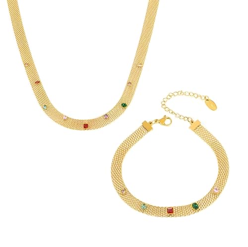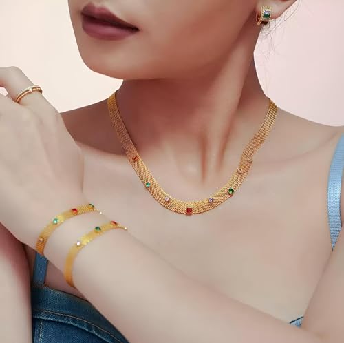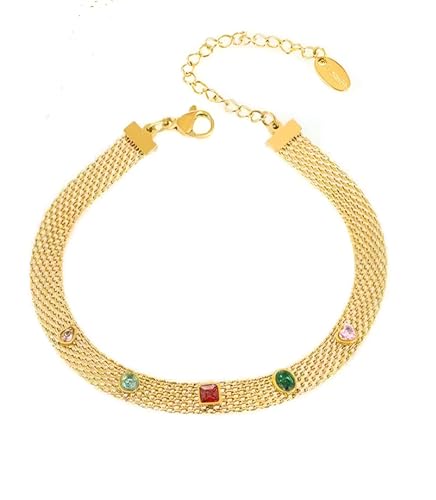 Generic - سلسلة وضميمة من ستاليس - قلادة شبكية مذهلة من الستانلس ستيل مع تفاصيل كريستال متعددة الالوان، تتميز بسلسلة قابلة للتعديل تعطي مرونة وسحر وجاذبية فائقة (سوار)