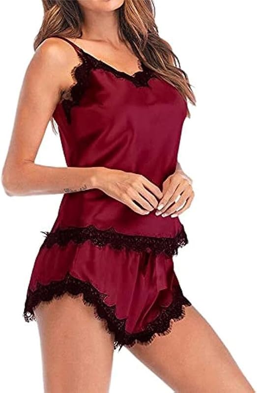 generic - طقم لانجيري ستان مكون من توب وشورت مع مكبس مقاس واحد عالي الجودة