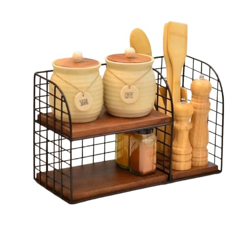 - متانة استثنائية وثبات فائق: صُمم الهيكل من معدن قوي يدعم رفين من الخشب عالي الجودة، مما يضمن تحمل الأوزان الثقيلة لعلب السكر وبرطمانات القهوة دون اهتزاز أو انحناء.