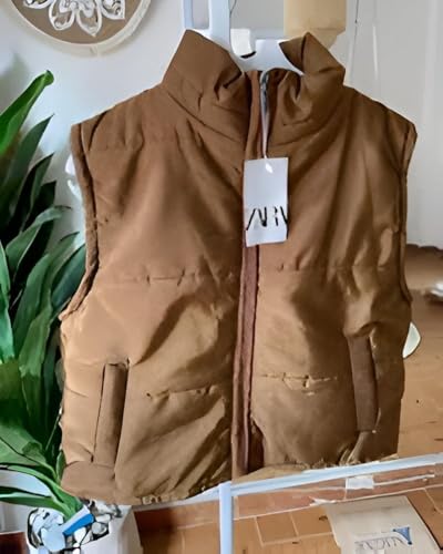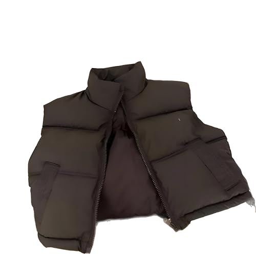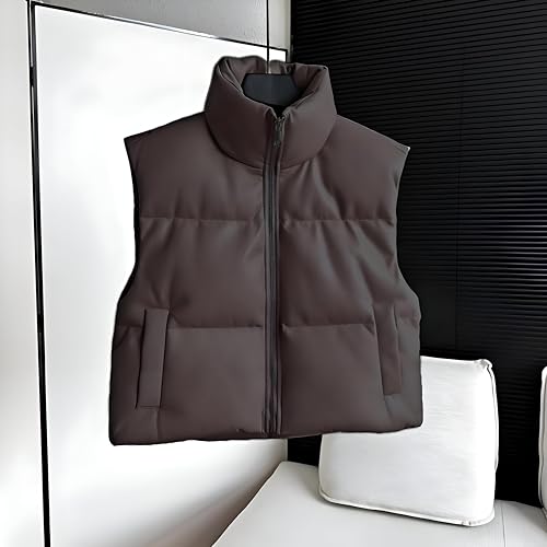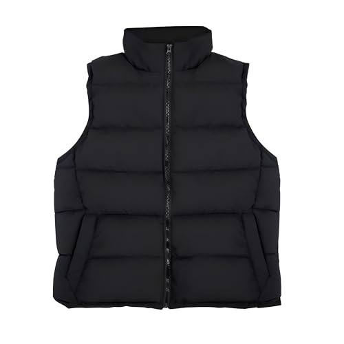 Generic - سترة منتفخة بياقة واقفة - جاكيت مبطن اسود بدون اكمام مع سحاب امامي، جيوب متعددة، مصمم للطبقات والدفء
