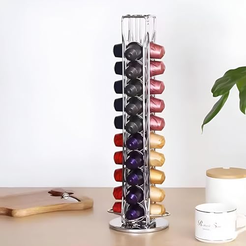 Generic - منظم كبسولات معدني دوار - متوفر بمقاسات 32 و40 كبسولة - فضي لامع (40 قطعة)