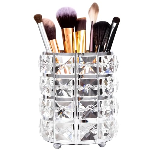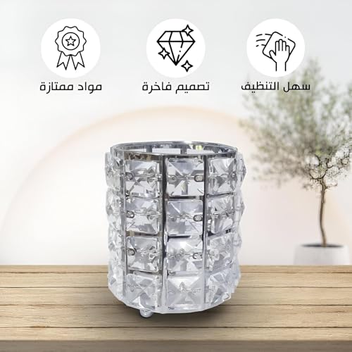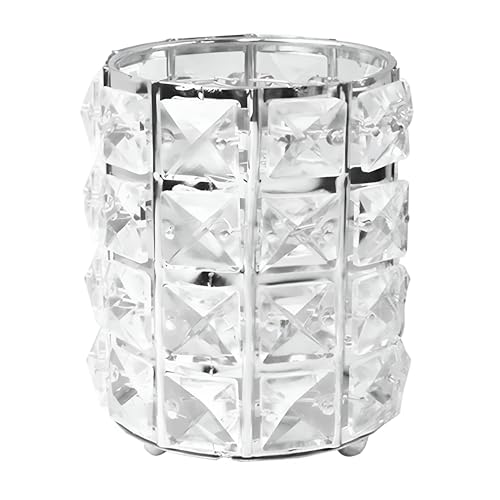 Generic - حامل فرش كريستال مصقول باللون الفضي، منظم لأدوات المكياج والأدوات المكتبية، كوب مزخرف عملي يمزج بشكل مثالي بين راحة التخزين والسحر اللامع لسطح الطاولة