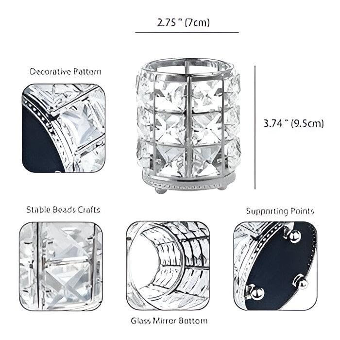- مصنوع من معدن فاخر وكريستالات مربعة الشكل، يجمع حامل فرش المكياج الكريستالي المصنوع يدويًا بين المتانة والأناقة. يتم تثبيت كل كريستال بشكل آمن في مكانه، مما يضمن بقاء المنظم قويًا ولا يفقد لمعانه أو هيكله بمرور الوقت، مما يضيف كلاً من العملية ولمسة من الفخامة إلى طاولة الزينة أو المكتب.