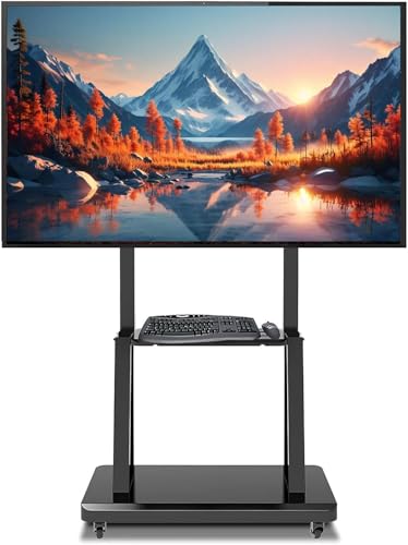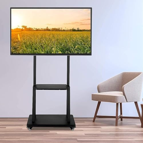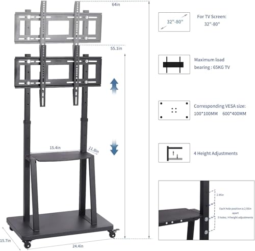 Generic - حامل مع عجلات : عربة متنقلة لشاشة LED/LCD/OLED/ المنحنية والمسطحة مقاس 32-80 بوصة، بتصميم ارضي مع رف متحرك دوار محمول وقاعدة شديدة التحمل فيسا 600x400