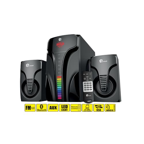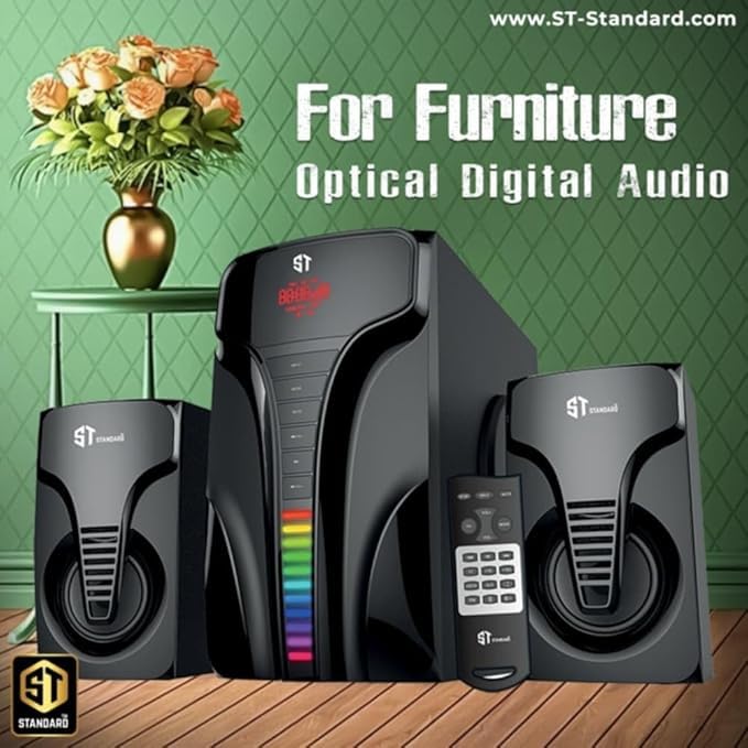 - [صوت قوي 2.1] مزود بمضخم صوت باس بقطر 13 سم ومكبري صوت ساتلايت بحجم 8 سم، بقوة إجمالية 60 وات (30 وات للمضخم و15 وات لكل مكبر صوت)، ليمنحك صوتًا نقيًا وواضحًا مع صوت باس قوي.
