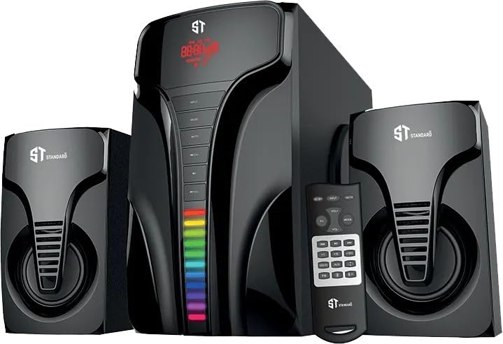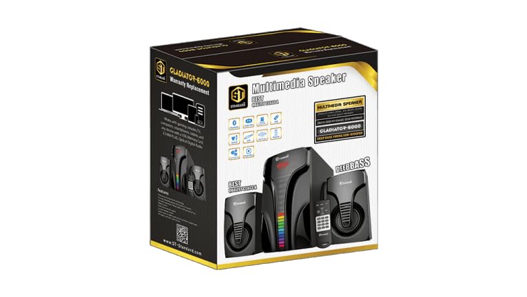 Standard - مكبرات صوت وسائط متعددة بصوت باس عميق للكمبيوتر والألعاب والمسرح المنزلي تدعم البلوتوث، USB، SD، راديو اف ام، AUX، ار جي بي من ستاندرد - لون أسود، GLADIATOR-6000