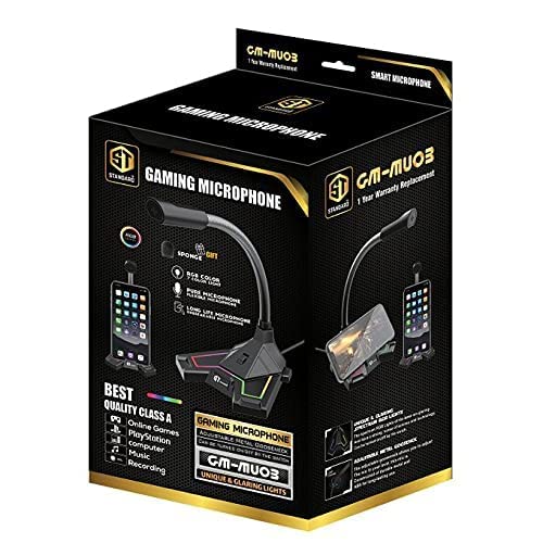 Generic - ميكروفون سطح المكتب USB بالجري من ستاندرد GM-MU03 – حامل للجوال – كابل 2 متر للكمبيوتر/لاب توب، هايبر كارديويد، أبيض