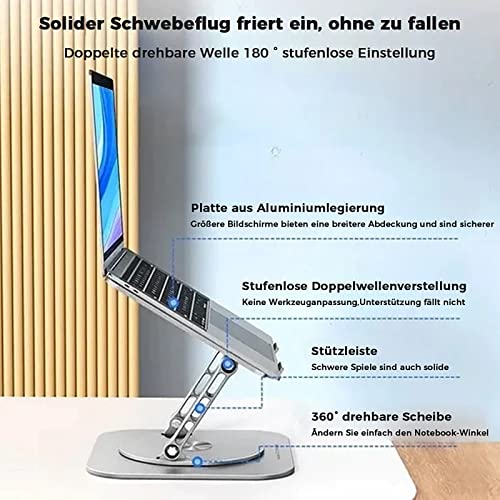 - تصميم دوار 360 درجة - دوران شامل 360 درجة، من السهل تغيير زاوية حامل اللاب توب، في أي وقت للتدوير للتعامل مع المناسبات المختلفة التي تحتاج إلى زاوية، والصوت المنبعث من دوران الحامل غير مضغوط للغاية.