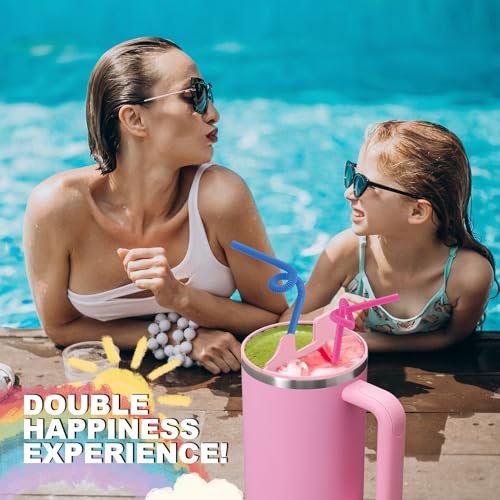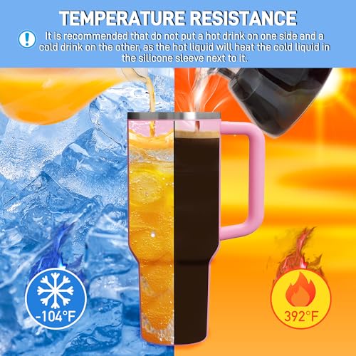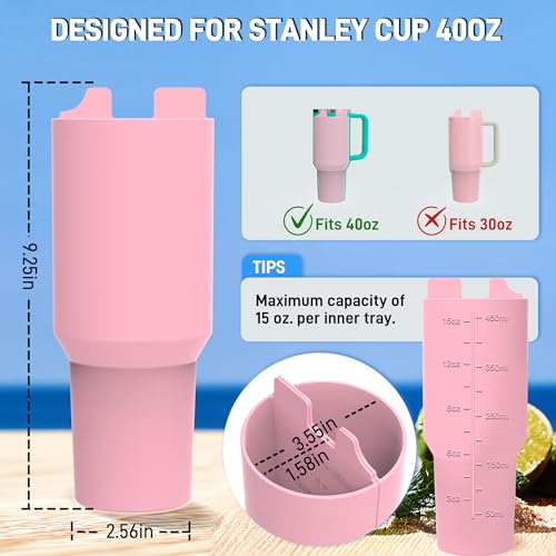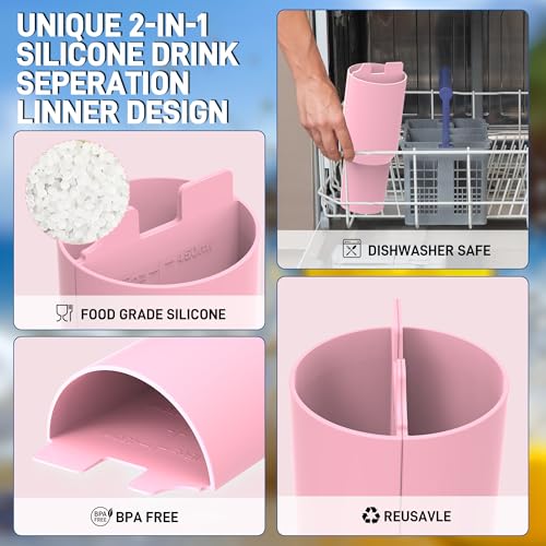 NinjaTiger - مقسم أكواب من السيليكون لمج ستانلي سعة 1.18 لتر مصمم لتقسيم المشروبات داخل الكوب بتصميم قابل لإعادة الاستخدام ويعد من الملحقات العملية لمجات ستانلي للمشروبات المزدوجة، لون وردي