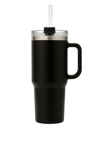 Generic - كوب حراري من الفولاذ المقاوم للصدأ بجدار مزدوج معزول بتفريغ الهواء ومقاوم للتسرب ومتين يحافظ على المشروبات باردة وساخنة مناسب للسفر والمكتب والجيم والمنزل والمدرسة من ستانلي، أسود كلاسيكي
