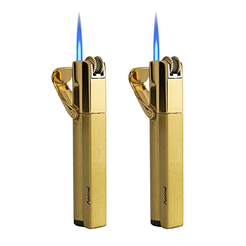 STAOSAN - ولاعة شعلة بوتان مقاومة للرياح بشعلة واحدة نفاثة قابلة، حجر قابل للتبديل من ستوسان، قطعتين (بدون غاز) (ذهبي)