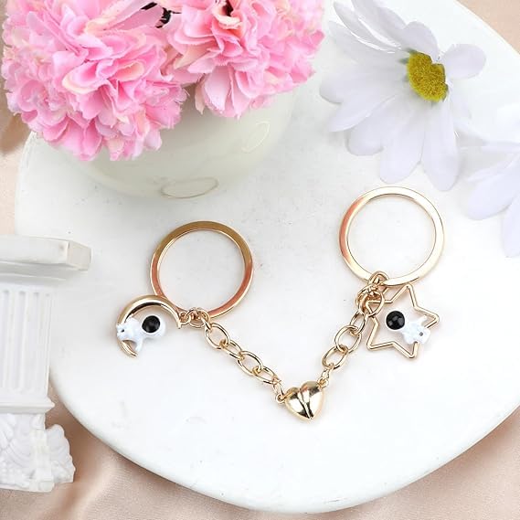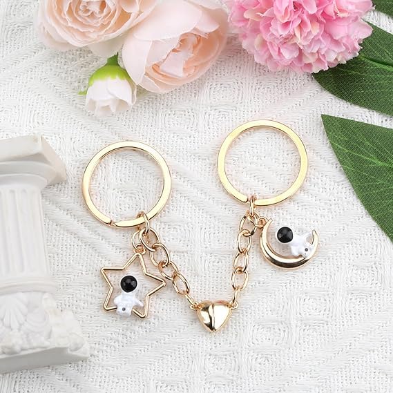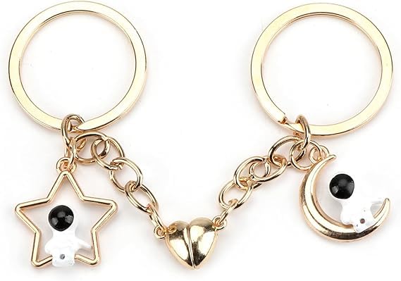 fashion mania - سلسلة مفاتيح بتصميم نجمة للازواج، مجموعة حلقات مفاتيح رائد فضاء، هدية للصديق والصديقة، سلسلة مفاتيح الحب الفضائية، مقاس واحد