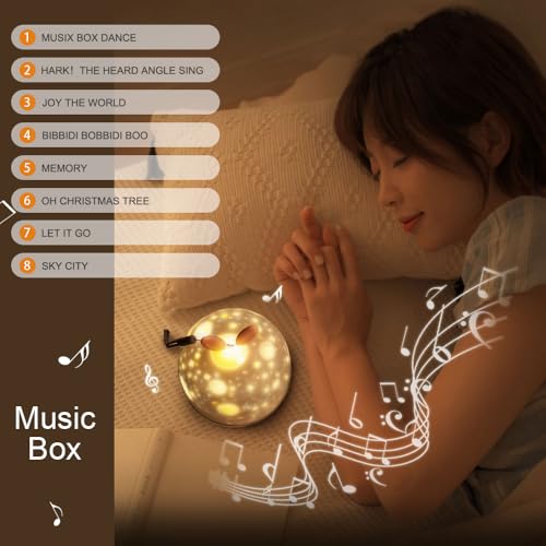 - 【8 أغاني تهويدة】8 أغاني تهويدة مهدئة تعمل مع تأثيرات إضاءة لطيفة، مما يوفر بيئة مثالية للنوم لإقناع الأطفال بنوم لطيف وعميق. يُعد وجود جهاز عرض الضوء الليلي هذا في غرفة الأطفال الخطوة الأولى لتطوير عادة نوم صحية ومستقلة. لن تقلق الأمهات بشأن نوم الأطفال بمفردهم بعد الآن.