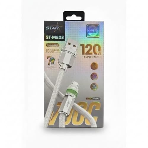 Generic - STAR كابل شحن ST-M808، Type-C، 120 واط، شحن سريع، 1000 مللي أمبير، VOOC، أبيض