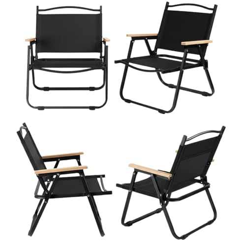 STAR WORK - كرسي محمول صغير الحجم خفيف للغاية قابل للطي مصنوع من الألومنيوم مع مساند للذراعين للأثاث الخارجي للسفر والتخييم والنزهات وصيد السمك وحفلات الشاطئ والتخييم من ستار وورك (أسود، صغير سمول)