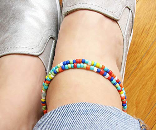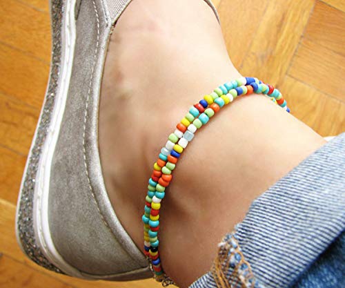Starain - خلخال خرز صغير للنساء والفتيات من ستارين سوار كاحل قدم للشاطئ لطيف ملون فسكو للصداقة 20.4 سم معدن