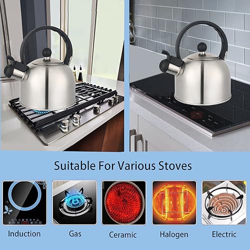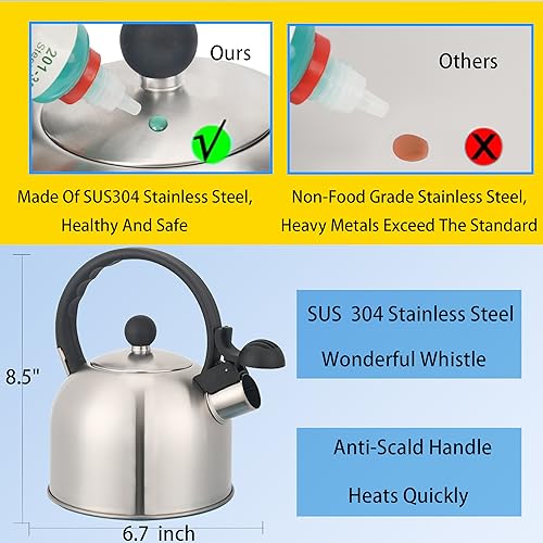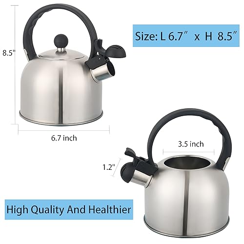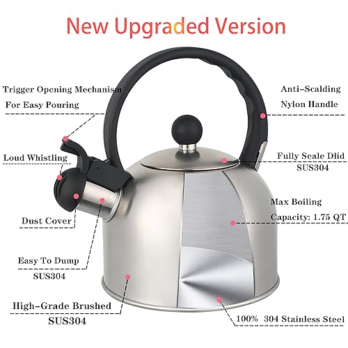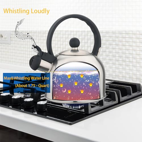 Starbbq - غلاية شاي بصفارة سعة 1.75 كوارت من ستاربكيو، ابريق شاي ستانلس ستيل 18/8 لماء ساخن سريع الغليان مناسب للمطبخ والتخييم والسفر
