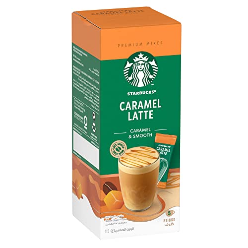 Starbucks - مزيج قهوة فاخرة سريعة التحضير بالكراميل واللاتيه من ستاربكس 23 جرام، صندوق من 5 أكياس
