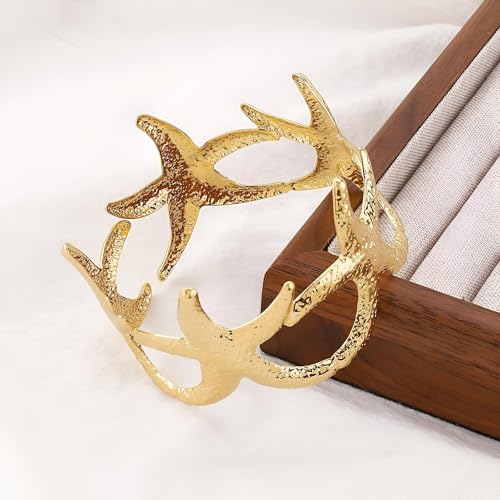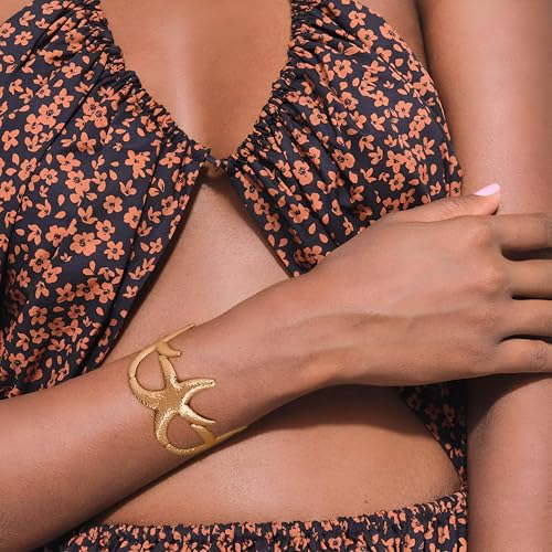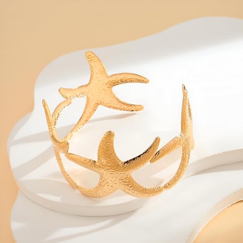 Generic - سوار بدلاية على شكل نجم البحر - اساور نسائية فريدة مزينة بدلايات على شكل نجم البحر وزخارف ذهبية سميكة، اكسسوار مثالي للمغامرات على شاطئ البحر والتجمعات الصيفية.