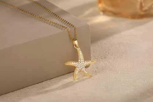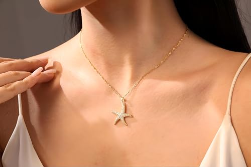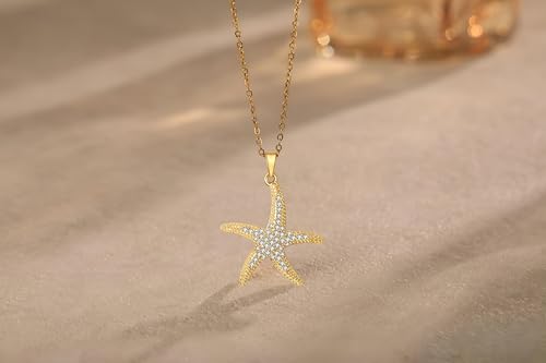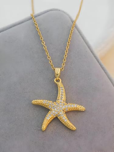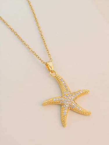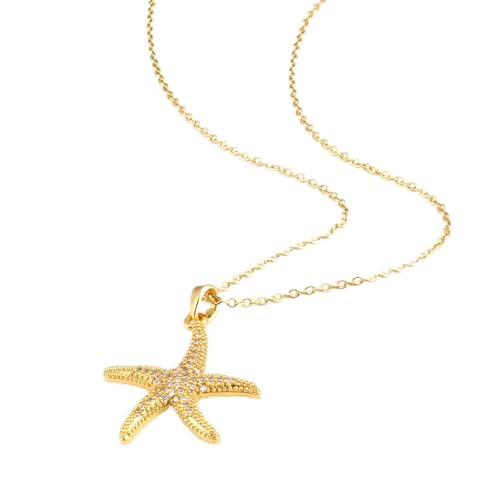 Generic - قلادة على شكل نجم البحر - قلادة ذهبية فاخرة مع زخرفة نجم البحر الصغيرة مزينة بالزركونيا المكعبة للحصول على سحر محيطي أنيق وبسيط