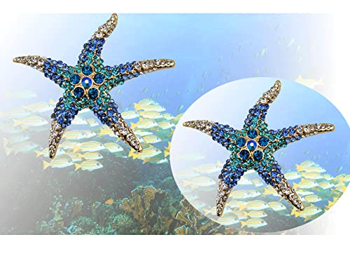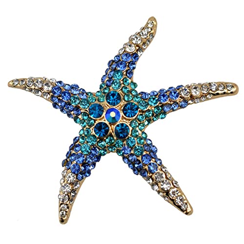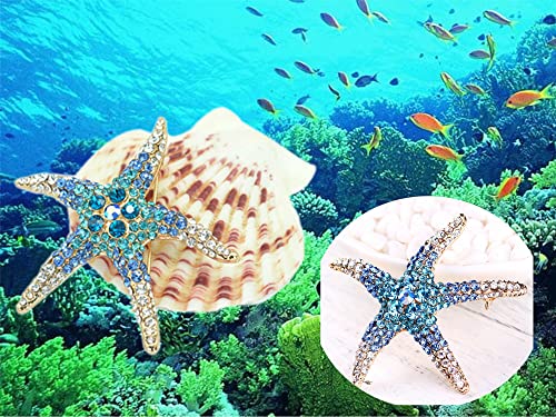 dresspin - دبوس بروش من كريستال حجر الراين علي شكل نجمة البحر، دبوس بروش لحفلات الزفاف والبالطو والفستان، مجوهرات اكسسوارات للملابس، هدية للعروس والبنات والنساء، الومنيوم، حجر ذهبي, الومنيوم, غولد ستون