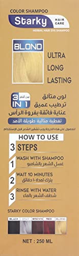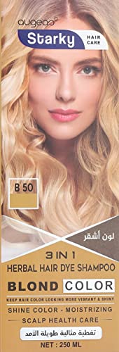 Starky - شامبو صبغة الشعر بالاعشاب وبلون اشقر 3 في 1 للحصول على لون متالق وترطيب وعناية فائقة بفروة الرأس وتغطية مثالية طويلة الامد من ستاركي B50 - 250 مل
