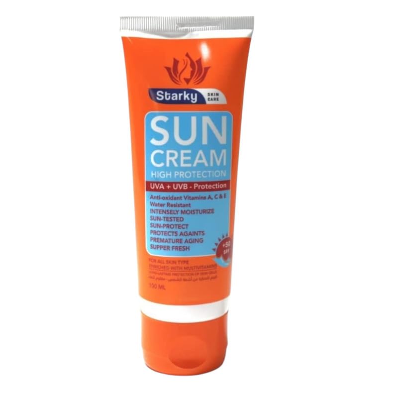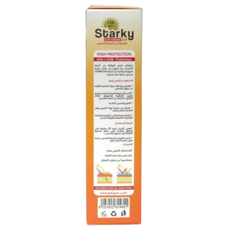 Starky - كريم واقي من الشمس من ستاركي، للعناية بالبشرة، حماية عالية بمعامل الحماية من الشمس 50، حماية من الاشعة فوق البنفسجية الطويلة والمتوسطة، لجميع انواع البشرة، غني بفيتامينات متعددة، 100 مل