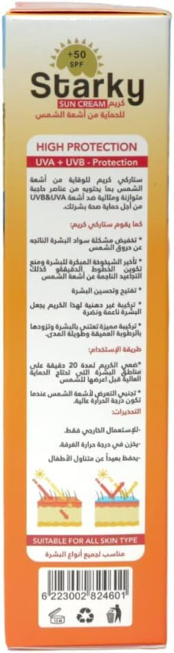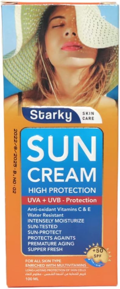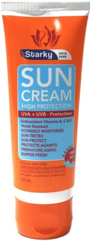 Generic - كريم واقي من الشمس ستاركي سكين كير + عامل حماية درجة 50 عالية الاشعة فوق البنفسجية فئة A وB - لجميع انواع البشرة غني بالفيتامينات - 100 مل لكل SPF