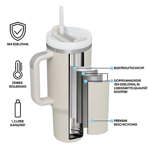 - سعة كبيرة وسهل التنظيف: يبلغ ارتفاع المج الحراري 27 سم وقطره 10 سم. تبلغ سعة المج 1.2 لتر ليلبي احتياجات مياه الشرب الخاصة بك بشكل كافي أثناء القيادة. من السهل تنظيف الكوب والغطاء بفضل فوهة المج العريضة، يمكن غسل المج والغطاء في غسالة الصحون والشفاطة بالفرشاة.