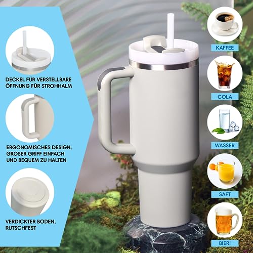 STARLA - مج معزول حراريًا مع شفاطة ومقبض من ستارلا، سعة 1.2 لتر، مج كبير بغطاءين ومقبض بتصميم معزول من الفولاذ المقاوم للصدأ للقهوة والماء والمشروبات أثناء التنقل والسفر (لون أخضر فاتح Laurel Leaf)