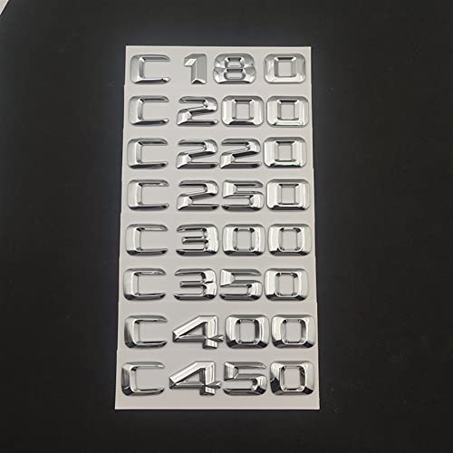 STARMS - ستيكر لاصق ثلاثي الأبعاد من بلاستيك ايه بي اس بتصميم حروف كروم لصندوق السيارة الخلفي C43 C180 C200 C220 C300 C350 من ستارمز (اللون : سي 180)