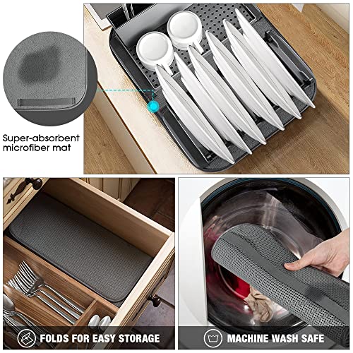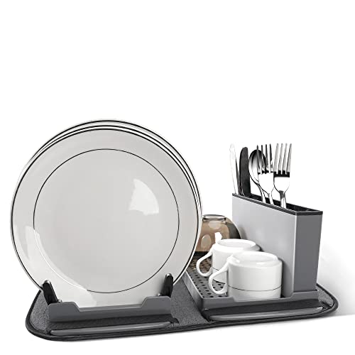 STARNINE - صفاية أطباق بلاستيك بتصميم متين مزودة بحامل لأدوات المائدة مع مفرش من المايكروفايبر لتجفيف الأطباق ستارناين رمادي