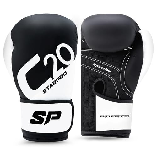 Starpro - ستاربرو | قفازات ملاكمة C20 لللكمات القوية والسريعة | قفازات ملاكمة للنساء والرجال، قفازات ملاكمة للرجال والنساء، قفازات ملاكمة 10 اونصة، قفازات ملاكمة 12 اونصة ومقاسات اخرى (اسود/ابيض، 8 اونصة)